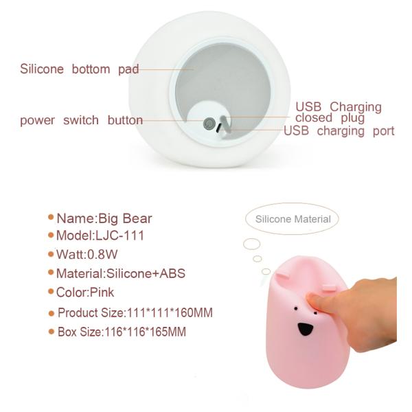 Silicon Animal Night Light Bear Night Light For Children's Bedroom